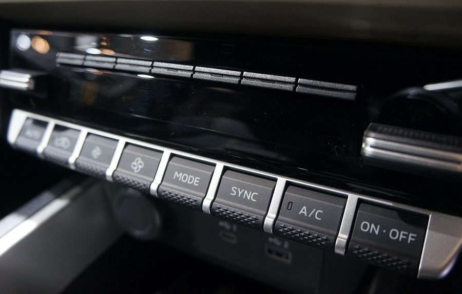 Các núm điều chỉnh điều hòa, và phía dưới là các cổng sạc. Ở hàng ghế sau cũng có ổ cắm riêng.
